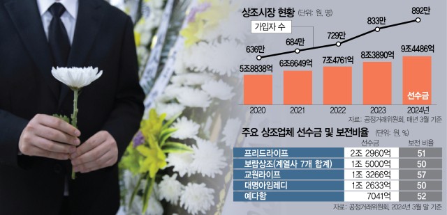 2024년 기준, 국내 상조업계의 선수금 규모는 약 9조 4,486억 원이며, 가입자 수는 약 892만 명에 달합니다. 매년 약 10%의 성장률을 감안할 때, 2035년에는 선수금 규모가 약 20조 원에 이를 것으로 전망됩니다.